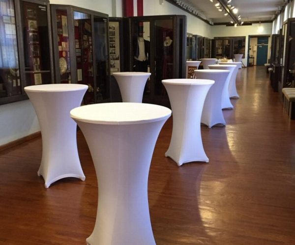 Stretched Table Cloth Hire: $10 excl. GST ( White / Black)